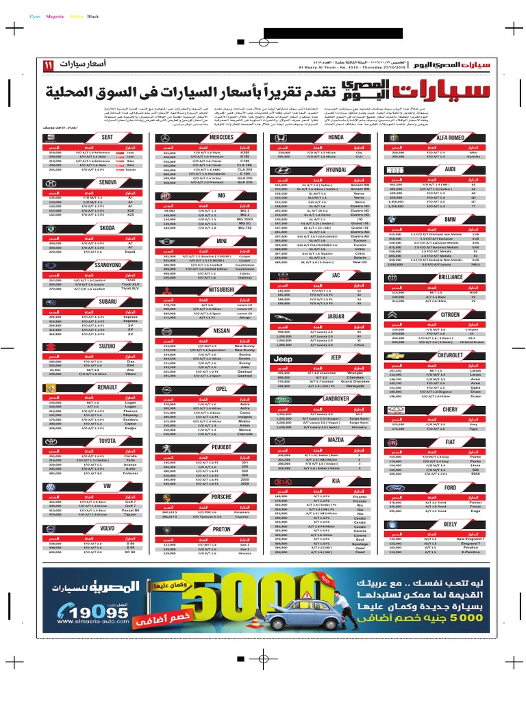 أسعار 2018 لجميع موديلات السيارات في مصر الأهرام اوتو