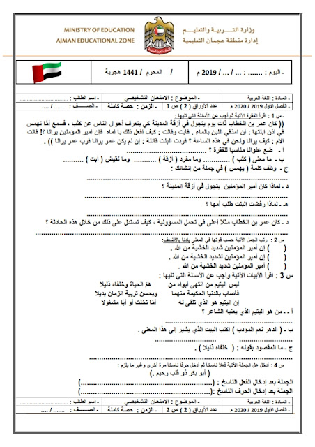اختبار تشخيصي في مادة اللغة العربية للصف الثالث الصف الثالث لغة عربية الفصل الأول 2019 2020 المناهج الإماراتية