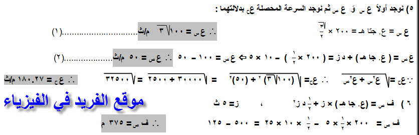 مسائل محلولة على حركة المقذوفات ـ تمارين ـ الدرس الثالث