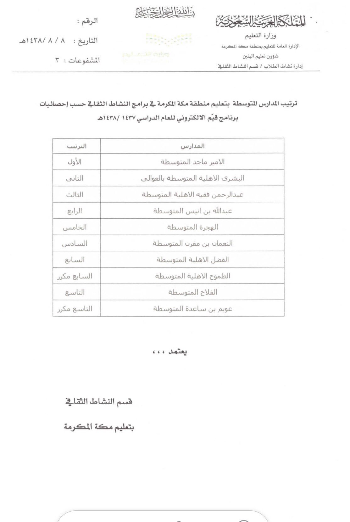 ثقافي مكة المكرمة On Twitter تعميم ترتيب المدارس في برامج النشاط الثقافي للعام الدراسي 1437 1438 هجري
