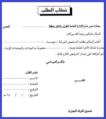 نماذج و قوالب نموذج طلب ترخيص أجرة عامة صيغة