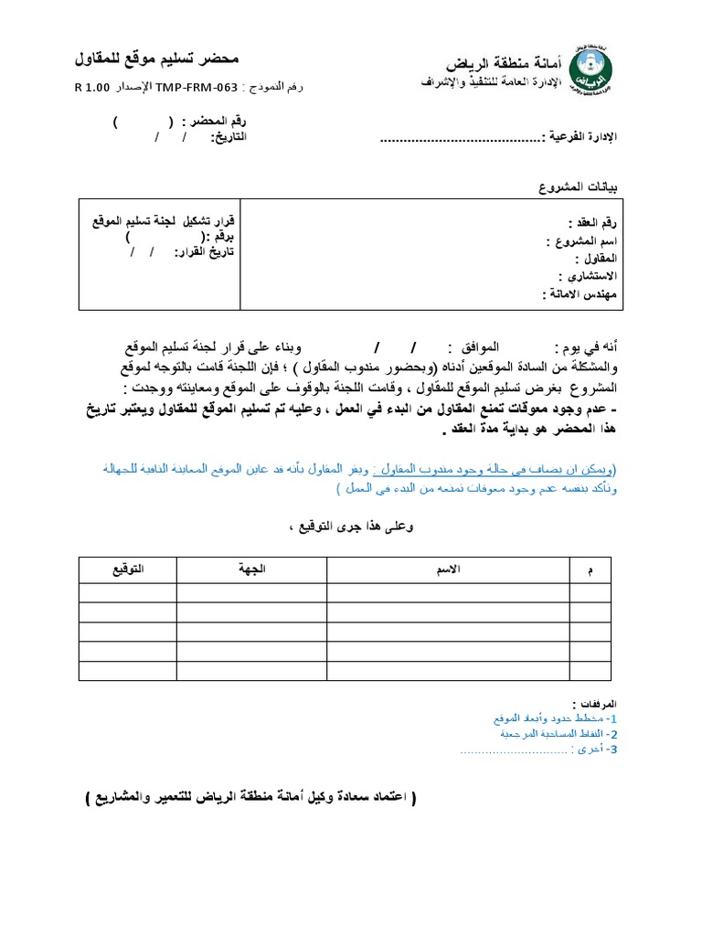نموذج محضر إستلام موقع