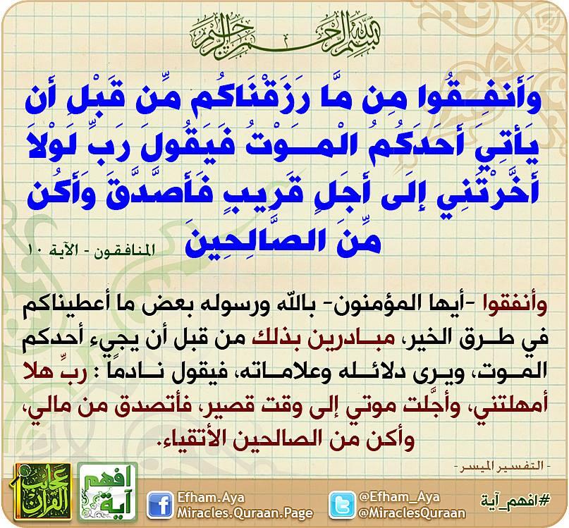 افهم آية Na Twitteru Adelsaad77 وأنفقوا من ما رزقناكم من قبل أن يأتي أحدكم الموت فيقول رب لولا أخرتني إلى أجل قريب فأصدق وأكن من Http T Co 1gswvm1y2v