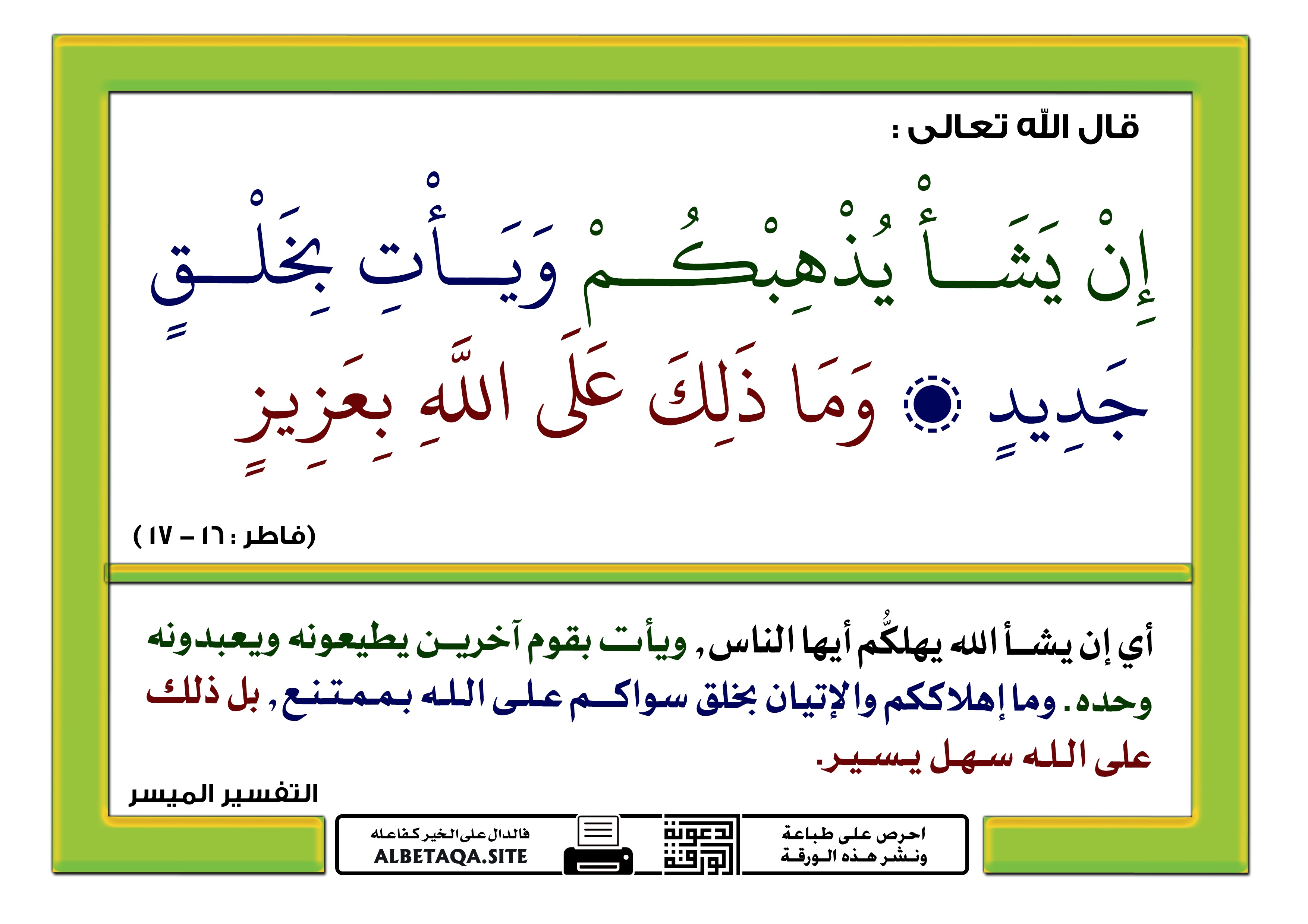 إن يشأ يذهبكم ويأت بخلق جديد موقع البطاقة الدعوي