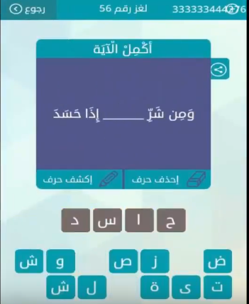 ومن شر حاسد اذا حسد وصلة. الكلمة الناقصة في الاية السابقة هي كلمة حاسد. جواب لغز ومن شر ـــ اذا حسد من لعبة وصلة المجموعة السابعة لغز رقم 56 اهلا وسهلا متابعينــــــــا وكما عودناكم اقدم لكم حل جديد من لعبة وصلة اللعبة الشيقة الممتعة استمتع معنا بلعبة الذكاء للكبار جميلة وجديدة مازلنا. ومن شر حاسد إذا حسد اختلف أهل التأويل في الحاسد الذي أمر النبي صلى الله عليه وسلم أن يستعيذ من شر حسده به فقال بعضهم. حلول الغاز لعبة وصلة المجموعة السادسة لغز رقم 50.