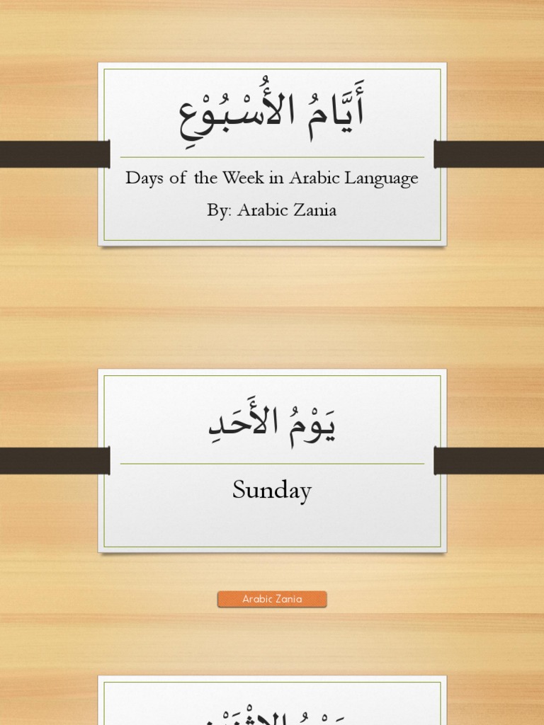 Days Of The Week In Arabic Language Arabic Zania