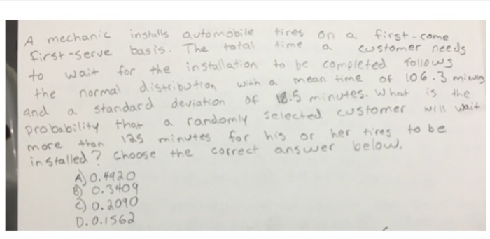 Solved A Mechanic Installs Automobile Tires On A First Co Chegg Com