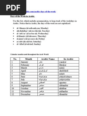 أسماء الأيام By Asus A456ur Days Of The Week In Arabic Language Arabic Zania Pdf Pdf Archive